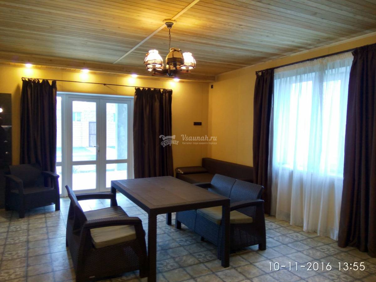 Отдыхали всей семьей.Очень понравилось.Комфортная комната отдыха, после парной было приятно плюхнуться в бассейн -освежает.Есть небольшая кухня и холодильник и микроволновка (подогрели детям еду).Порадовало наличие мангала.Шашлык на свежем воздухе-это что то!